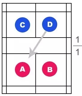 2、A和B得1分。A和B交换发球区。A从左发球区再次发球。C和D在原发球区接发球。1-0从左发球区A发球,D接发球。